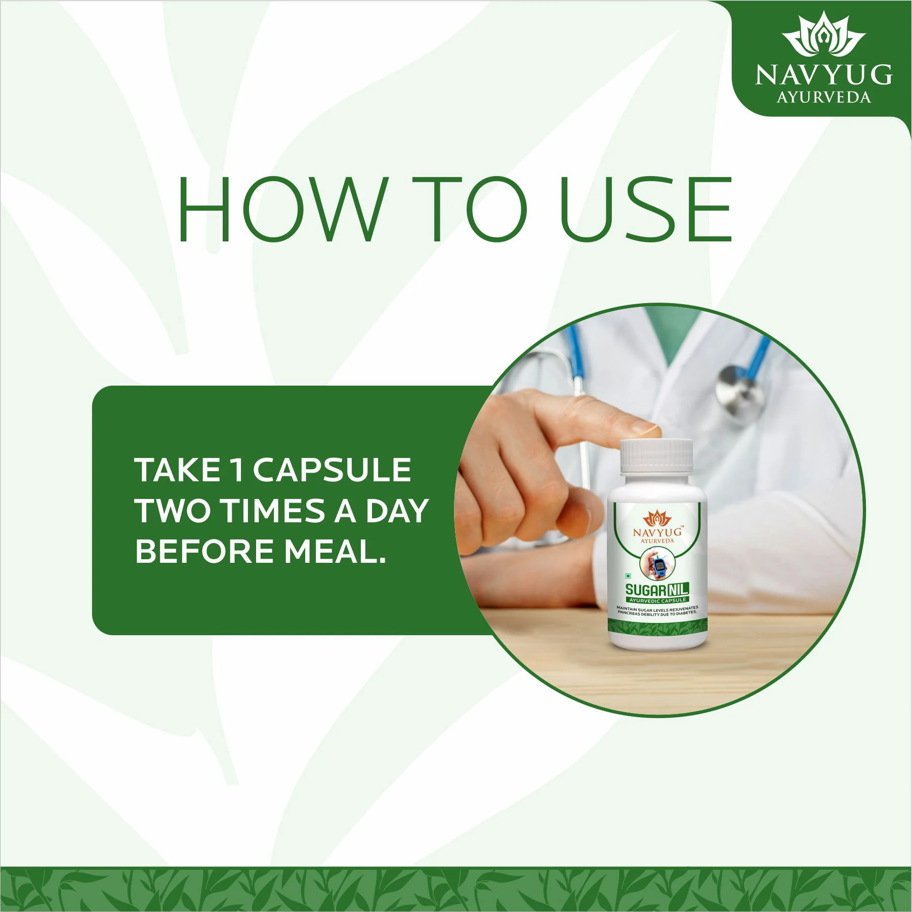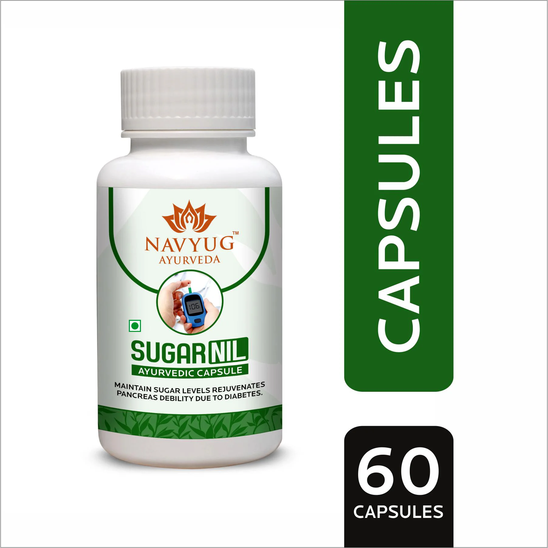 Navyug Ayurveda Sugar Nil is an Ayurvedic capsule designed to support healthy blood sugar management naturally. It helps maintain balanced glucose levels, supports pancreatic function, improves metabolism, and promotes overall wellness.
